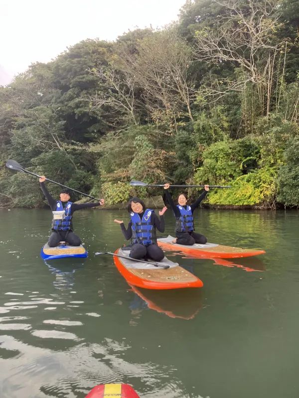 SUPでの非日常的な水上散歩は、爽快感・リフレッシュ効果がバツグン!また体幹が鍛えられるためエクササイズ効果もあり女性にも人気です。景色や川の流れを楽しみながら、ゆったりお過ごしください。ボードは安定性があるので、疲れたら座ったり、横になって休んだりすることもできますよ!老若男女から被くでも楽しめる人気のSUPを体験してみませんか。